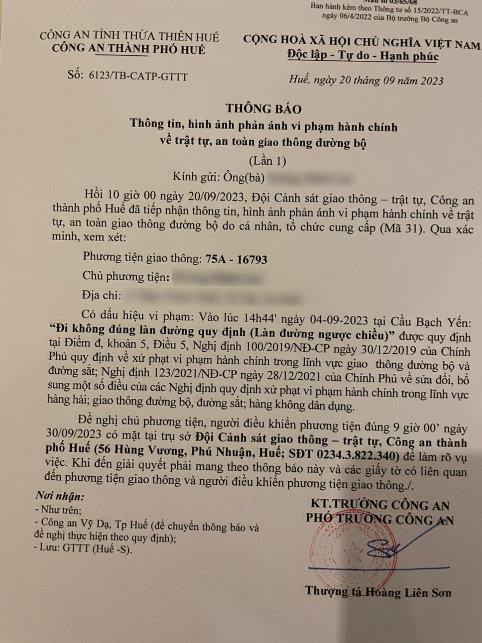 Vấn đề quý Ông/Bà phản ánh, Công an tỉnh đã chỉ đạo Công an thành phố Huế kiểm tra và xin thông báo kết quả xử lý như sau: