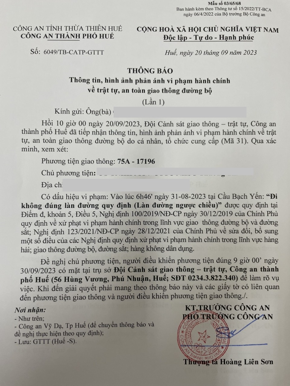 Vấn đề Ông/Bà phản ánh, Công an tỉnh đã chỉ đạo Công an thành phố Huế kiểm tra và xin thông báo kết quả xử lý như sau: