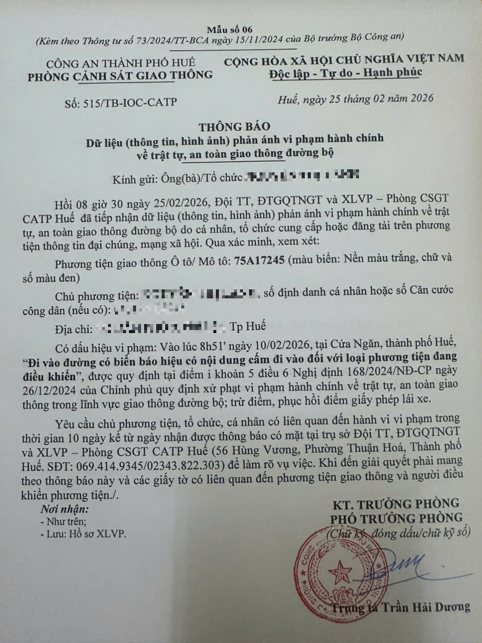 Vấn đề quý Ông/Bà phản ánh, Phòng Cảnh sát giao thông – Công an thành phố Huế đã kiểm tra và xin thông báo kết quả như sau: