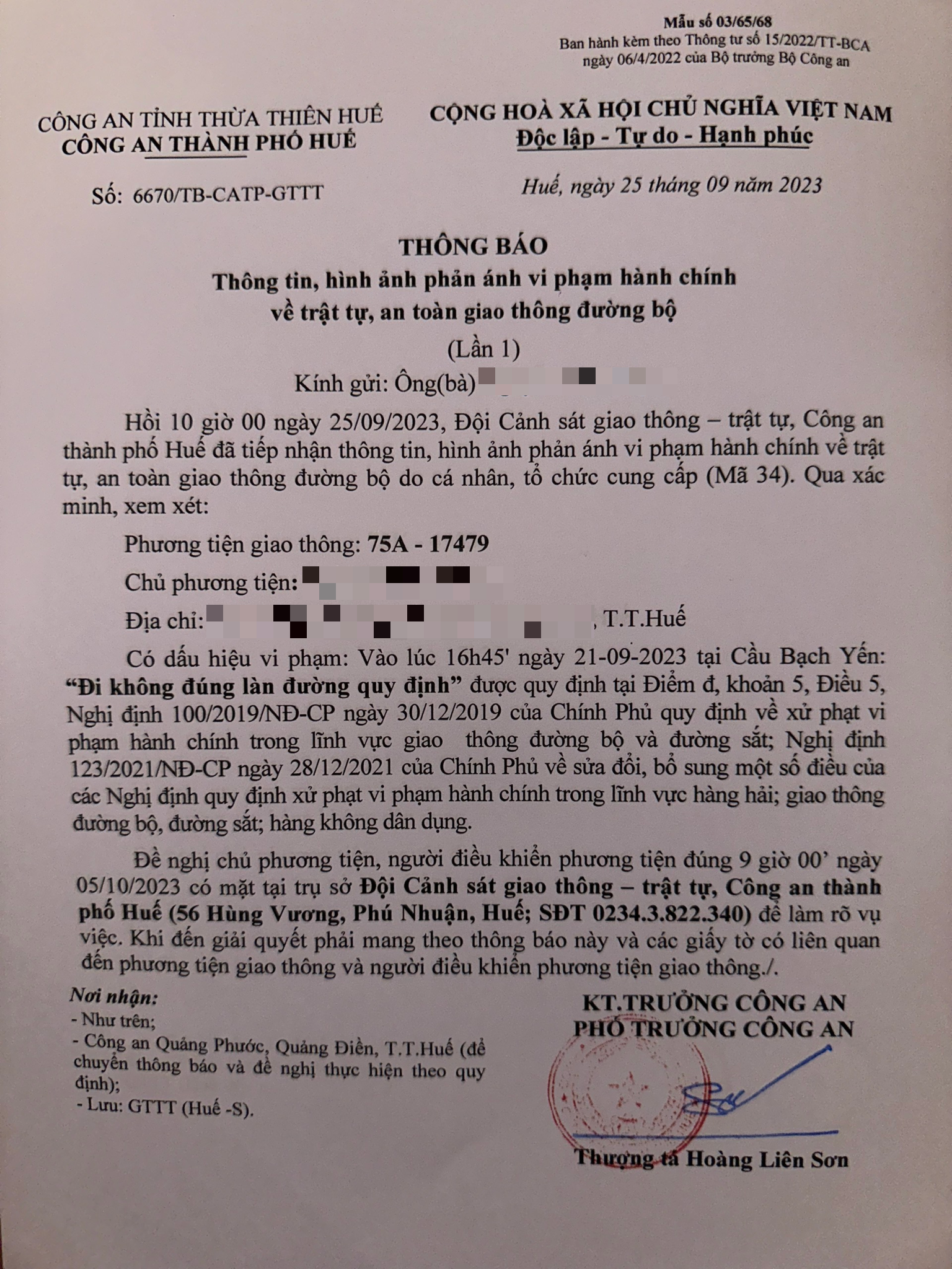 Vấn đề Ông/Bà phản ánh, Công an tỉnh đã chỉ đạo Công an thành phố Huế kiểm tra và xin thông báo kết quả như sau:
