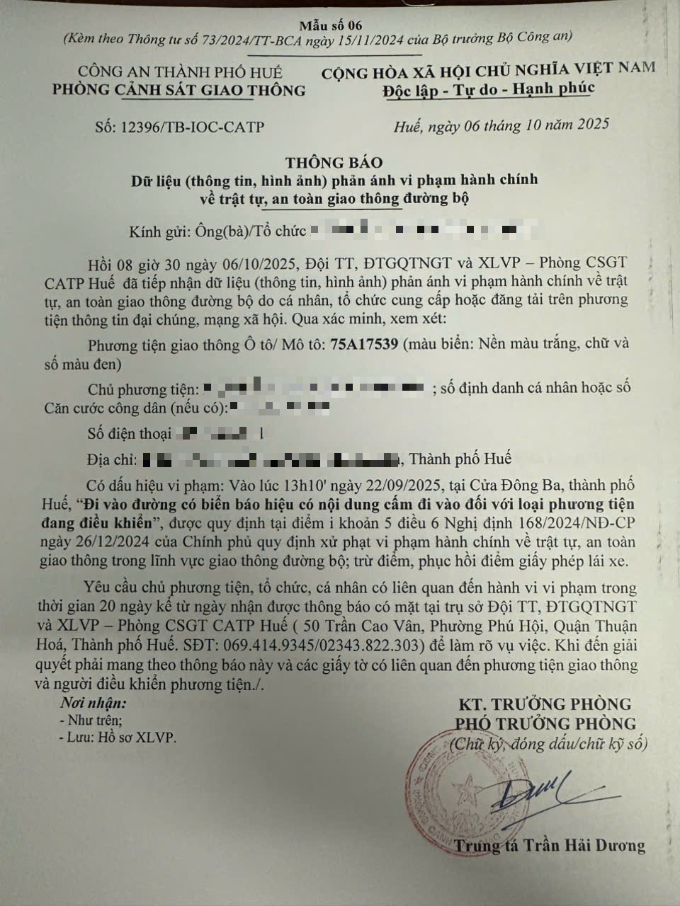 Vấn đề quý Ông/Bà phản ánh, Phòng Cảnh sát giao thông – Công an thành phố Huế đã kiểm tra và xin thông báo kết quả như sau:
