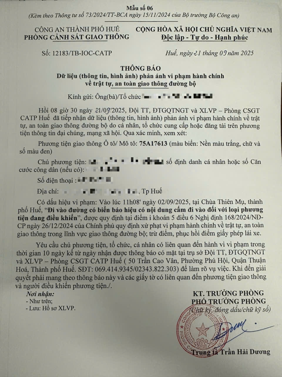 Vấn đề quý Ông/Bà phản ánh, Phòng Cảnh sát giao thông – Công an thành phố Huế đã kiểm tra và xin thông báo kết quả như sau: