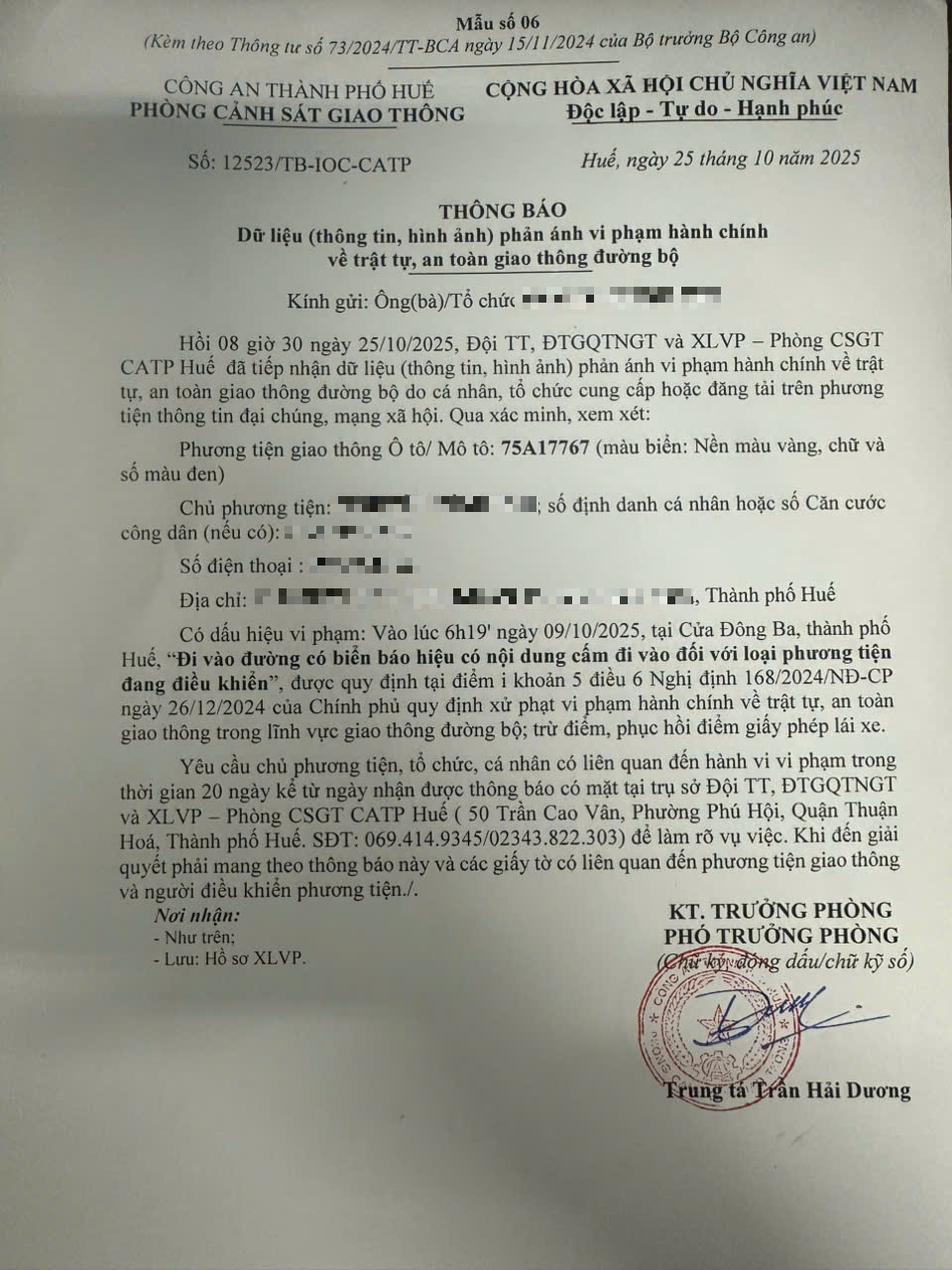 Vấn đề quý Ông/Bà phản ánh, Phòng Cảnh sát giao thông – Công an thành phố Huế đã kiểm tra và xin thông báo kết quả như sau: