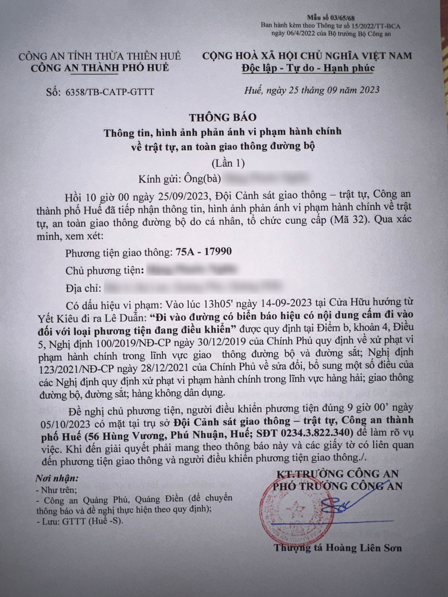 Vấn đề quý Ông/Bà phản ánh, Công an tỉnh đã chỉ đạo Công an thành phố Huế kiểm tra và xin thông báo kết quả như sau:
