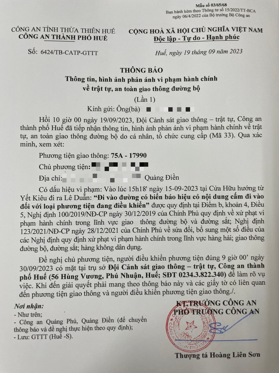 Vấn đề Ông/Bà phản ánh, Công an tỉnh đã chỉ đạo Công an thành phố Huế xác minh và xin thông báo kết quả như sau: