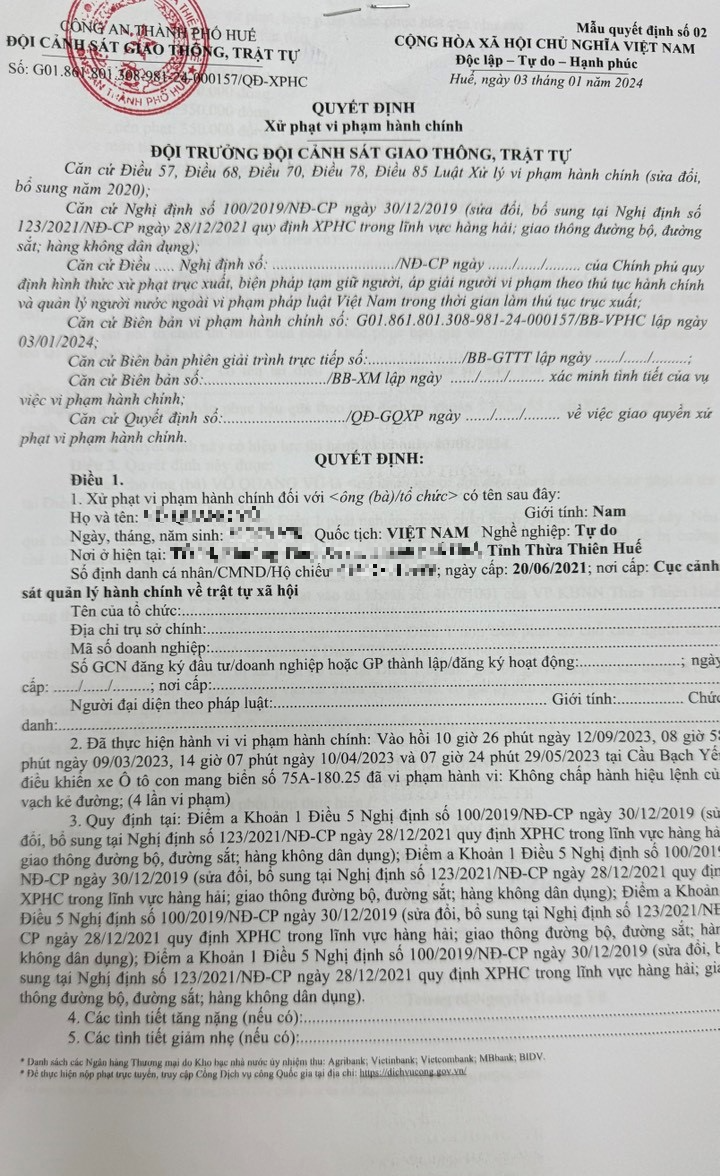 Vấn đề quý Ông/Bà phản ánh, Công an tỉnh đã chỉ đạo Công an thành phố Huế kiểm tra và xin thông báo kết quả xử lý như sau: