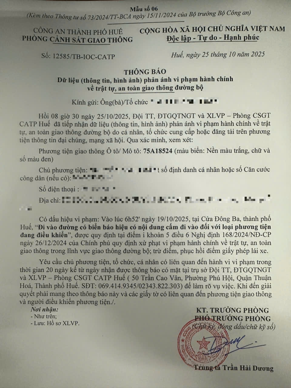 Vấn đề quý Ông/Bà phản ánh, Phòng Cảnh sát giao thông – Công an thành phố Huế đã kiểm tra và xin thông báo kết quả như sau: