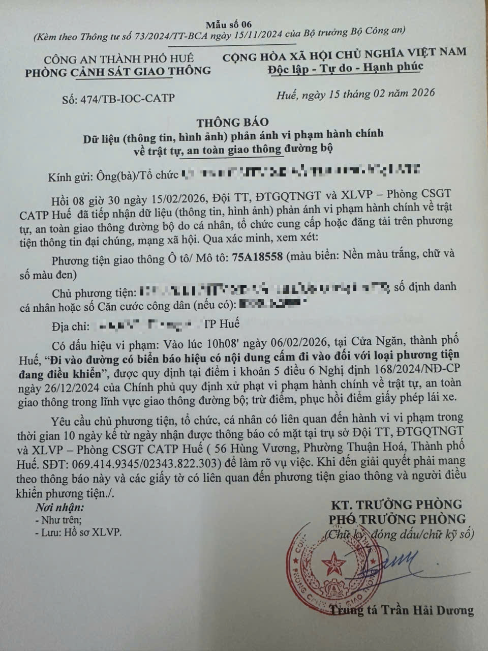 Vấn đề quý Ông/Bà phản ánh, Phòng Cảnh sát giao thông – Công an thành phố Huế đã kiểm tra và xin thông báo kết quả như sau:
