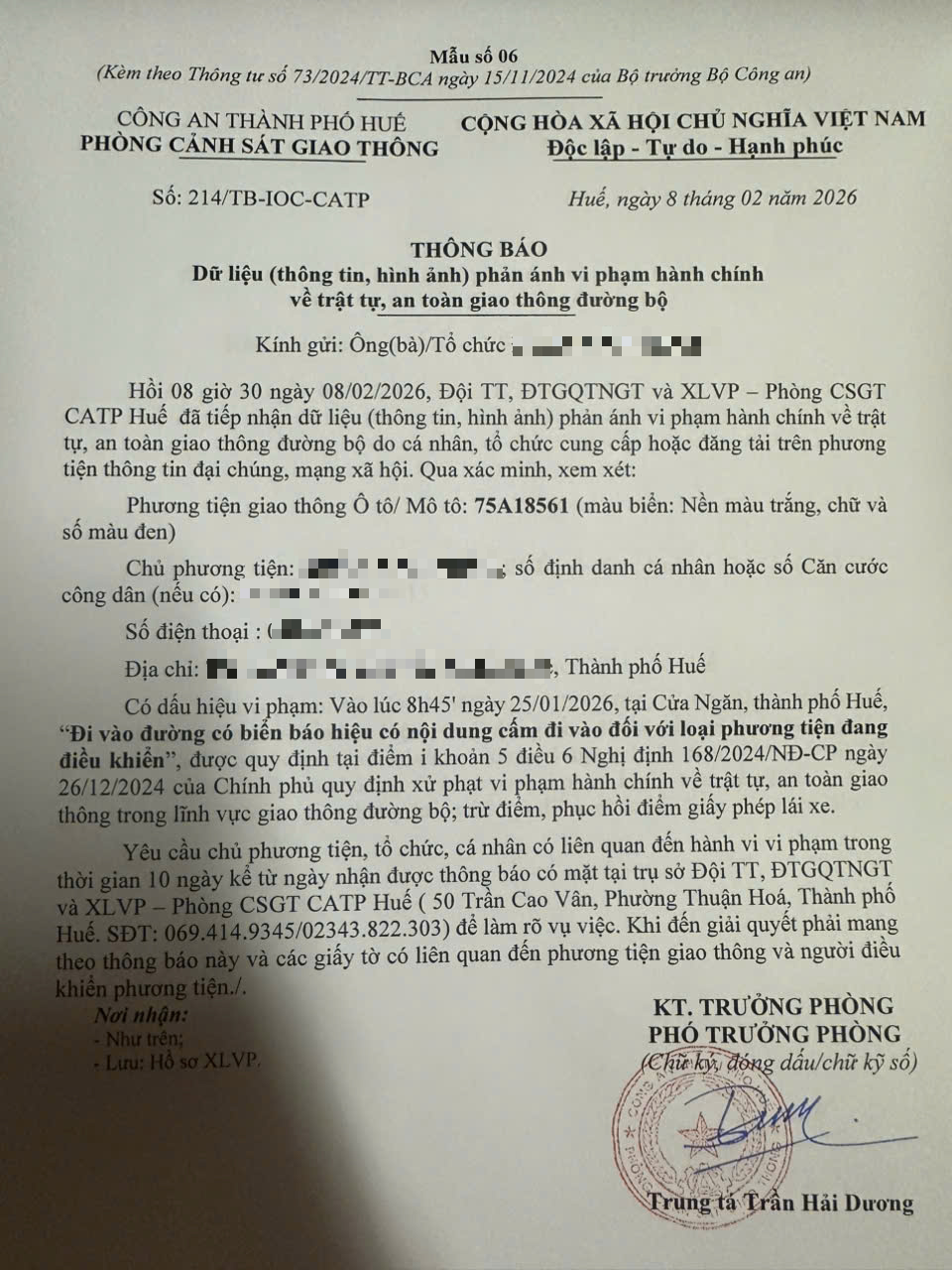 Vấn đề quý Ông/Bà phản ánh, Phòng Cảnh sát giao thông – Công an thành phố Huế đã kiểm tra và xin thông báo kết quả như sau: