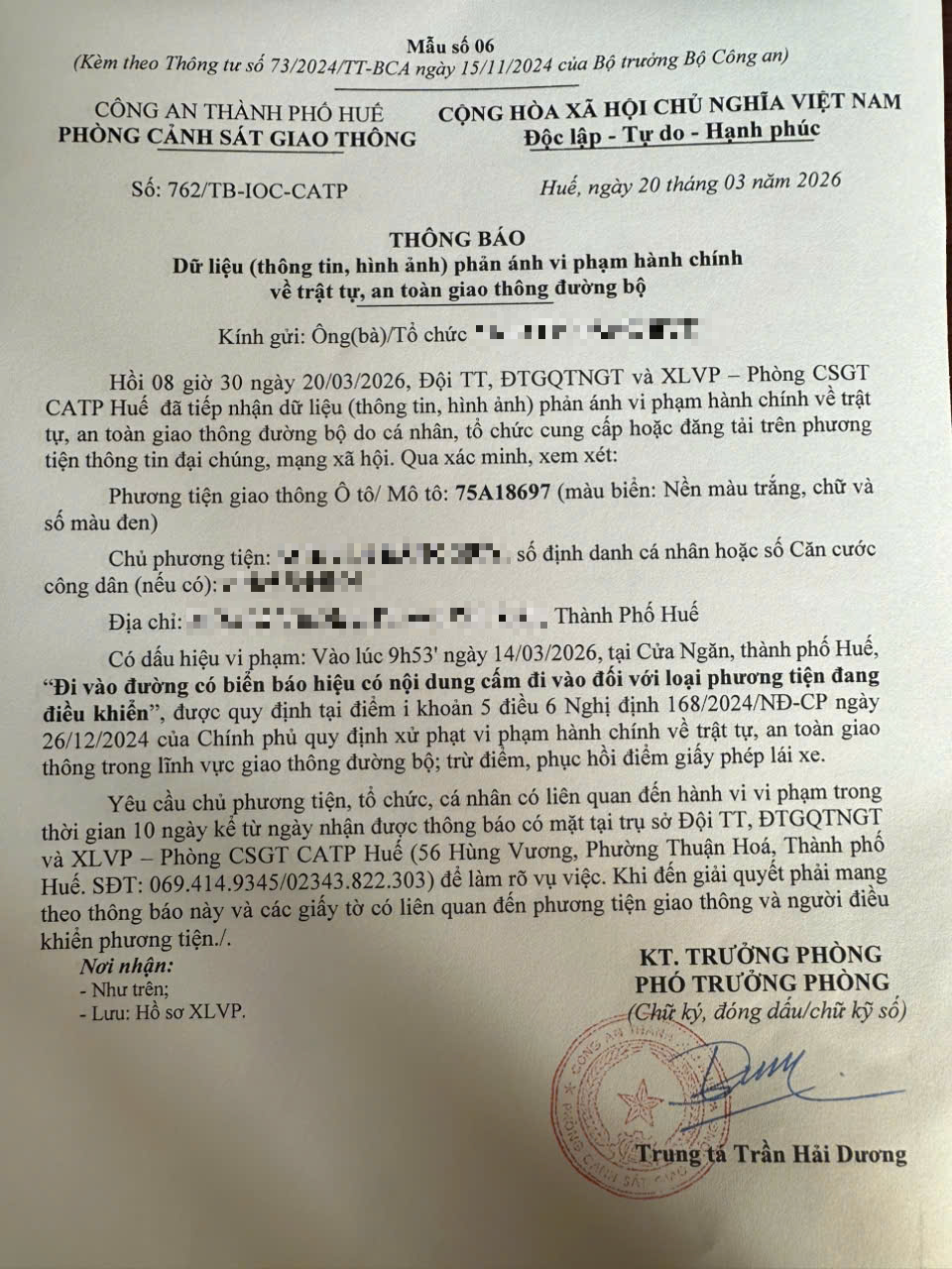 Vấn đề quý Ông/Bà phản ánh, Công an thành phố Huế đã chỉ đạo Phòng Cảnh sát giao thông kiểm tra và trả lời như sau: