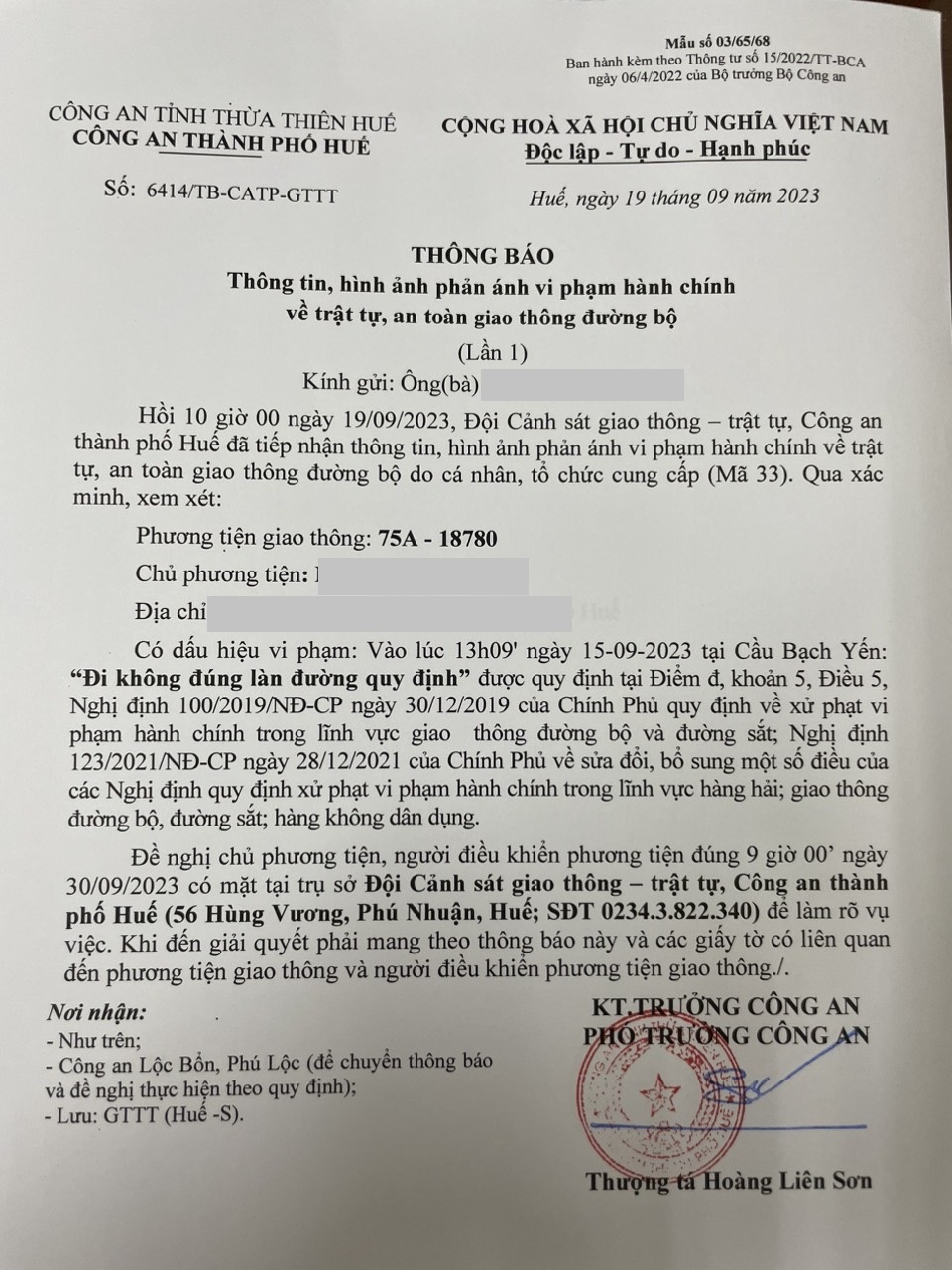 Công an thành phố cập nhật kết quả: Qua xác minh làm việc với chủ phương tiện vi phạm lỗi: Không chấp hành hiệu lệnh, chỉ dẫn của vạch kẻ đường, quy định tại điểm a, khoản 1, điều 5 Nghị định 100/2019/NĐ-CP được sửa đổi, bổ sung tại Nghị định 123/NĐ-CP ngày 28/12/2021. Ra Quyết định xử phạt 350.000đ. (Đính kèm Quyết định)