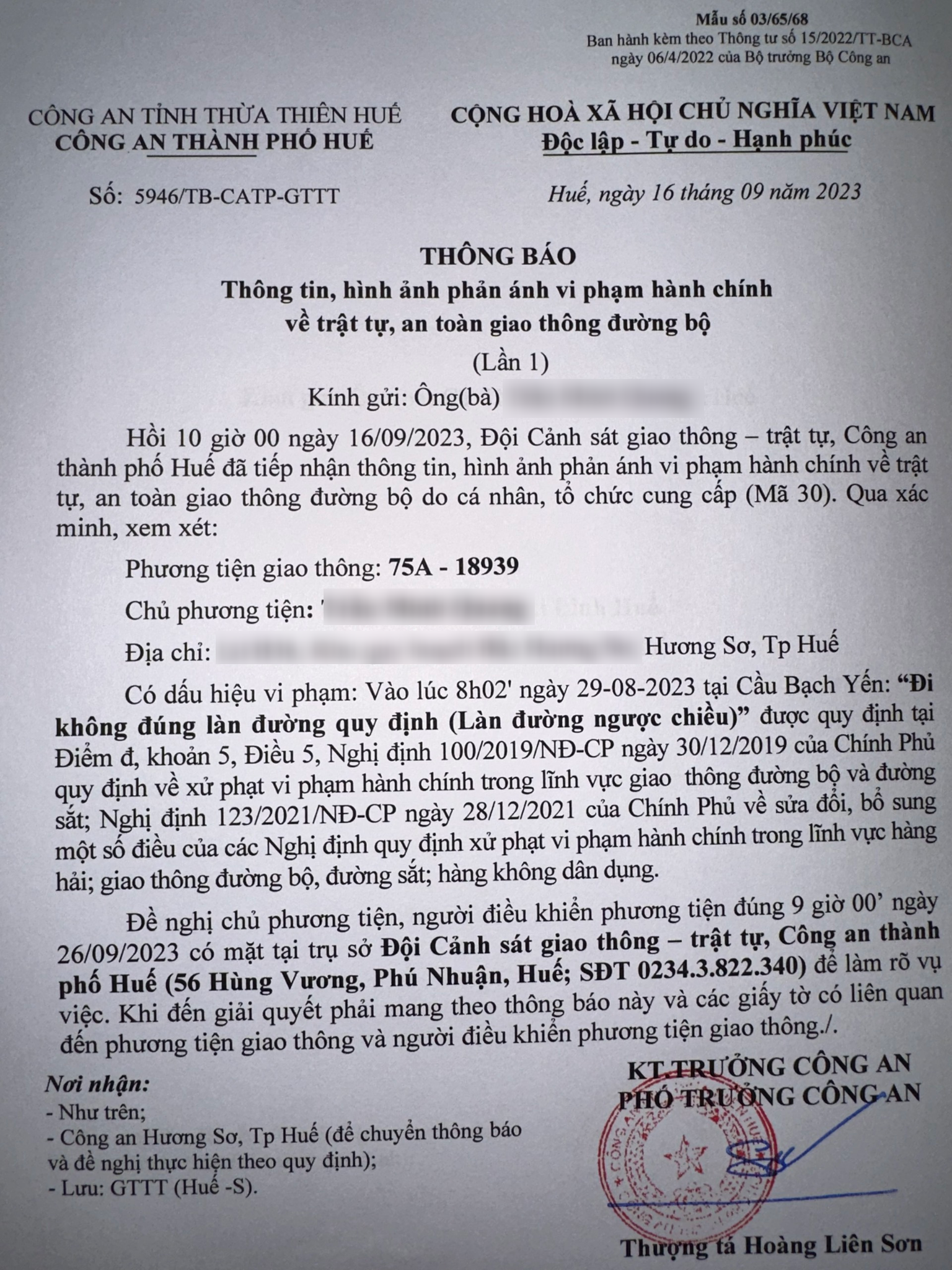 Công an thành phố cập nhật kết quả: Qua xác minh làm việc với chủ phương tiện vi phạm lỗi: Không chấp hành hiệu lệnh, chỉ dẫn của vạch kẻ đường, quy định tại điểm a, khoản 1, điều 5 Nghị định 100/2019/NĐ-CP được sửa đổi, bổ sung tại Nghị định 123/NĐ-CP ngày 28/12/2021. Ra Quyết định xử phạt 350.000đ. (Đính kèm Quyết định)