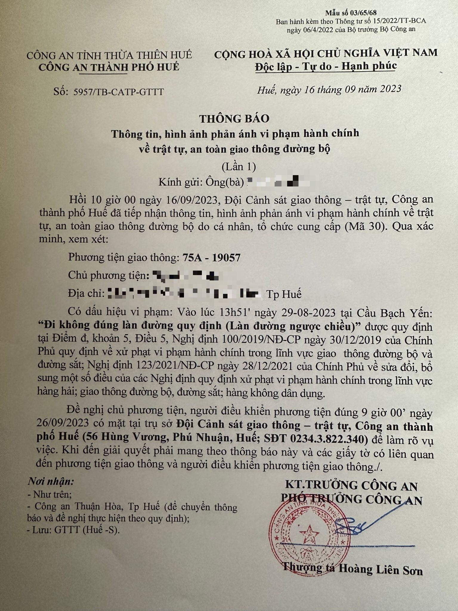 Vấn đề quý Ông/Bà phản ánh, Công an tỉnh đã chỉ đạo Công an thành phố Huế kiểm tra và xin thông báo kết quả xử lý như sau: