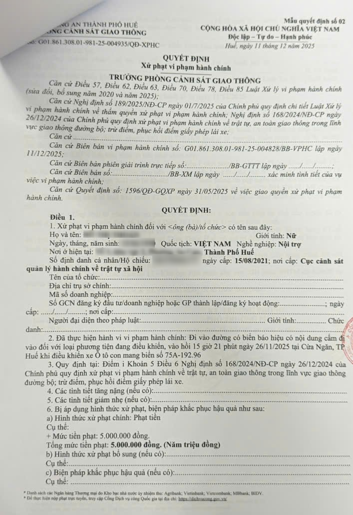 Phòng Cảnh sát giao thông cập nhật Quyết định xử phạt (Đính kèm QĐ).
