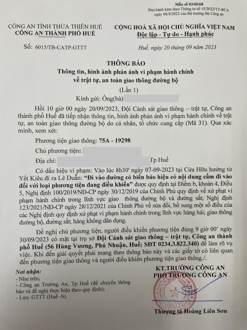 Công an thành phố cập nhật Quyết định xử phạt. (Đính kèm QĐ)