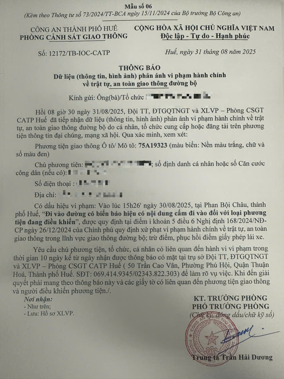 Vấn đề quý Ông/Bà phản ánh, Phòng Cảnh sát giao thông – Công an thành phố Huế đã kiểm tra và xin thông báo kết quả như sau: