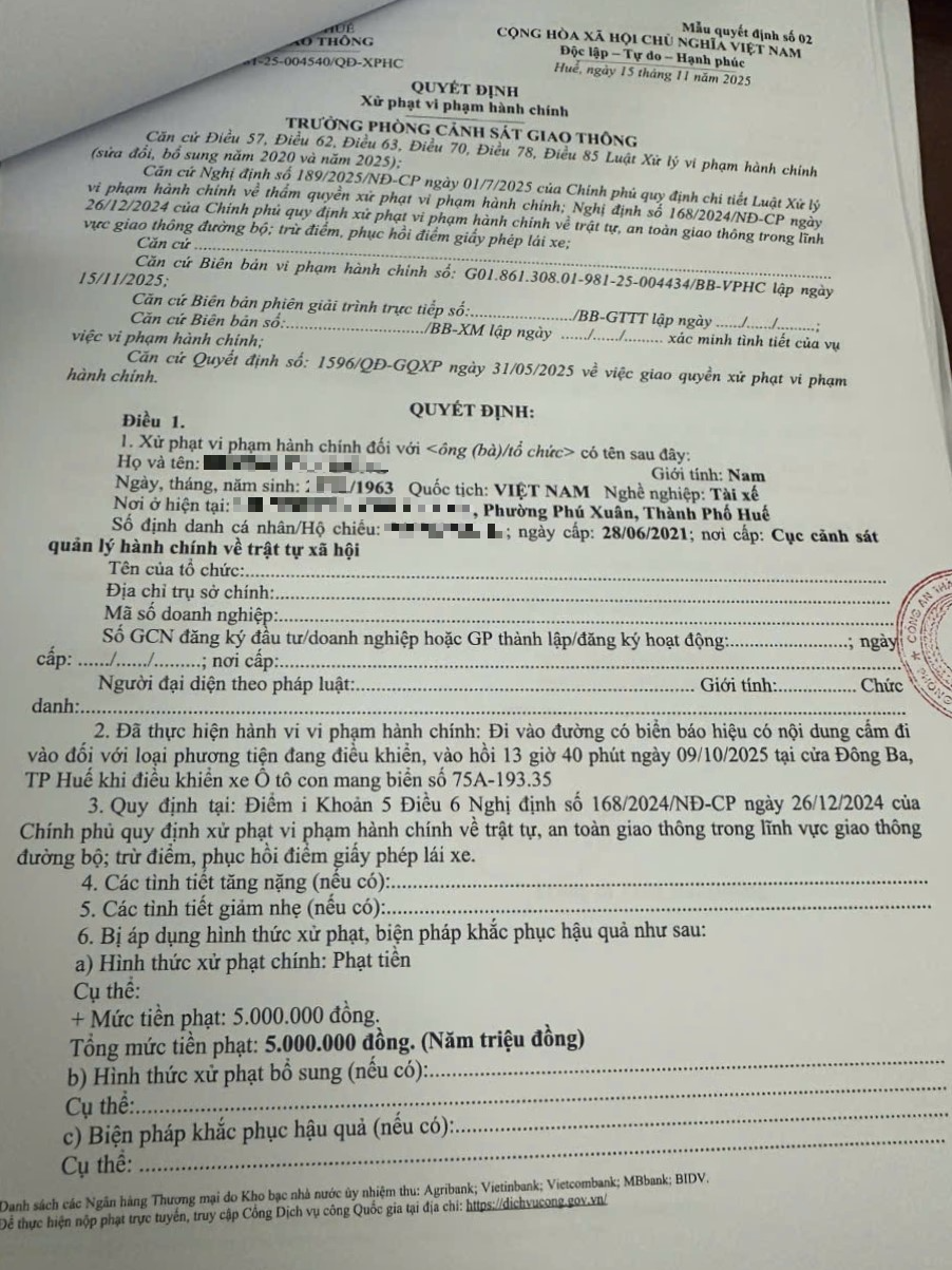 Phòng Cảnh sát giao thông cập nhật Quyết định xử phạt (Đính kèm QĐ).
