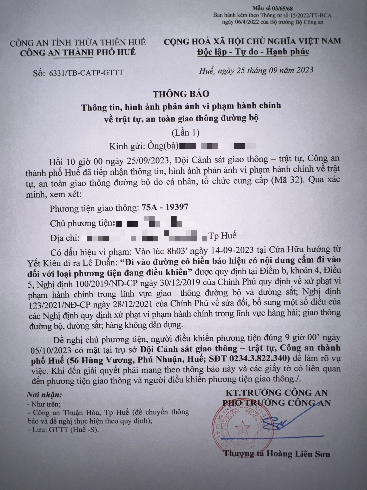 Vấn đề Ông/Bà phản ánh, Công an tỉnh đã chỉ đạo Công an thành phố Huế xác minh và xin thông báo kết quả như sau: