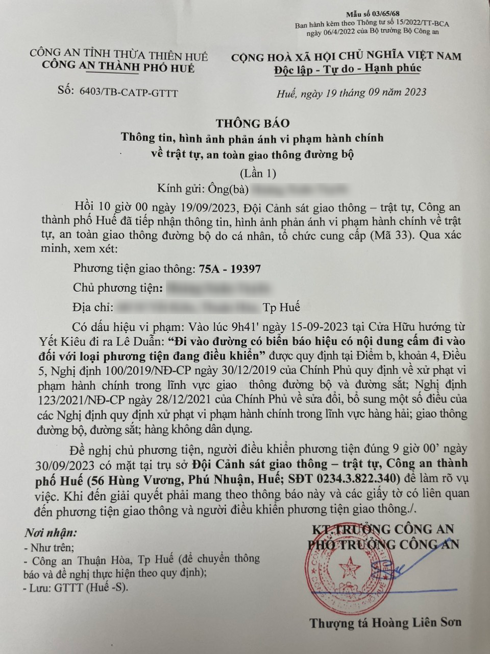 Vấn đề quý Ông/Bà phản ánh, Công an tỉnh đã chỉ đạo Công an thành phố Huế xác minh và xin thông báo kết quả như sau:
