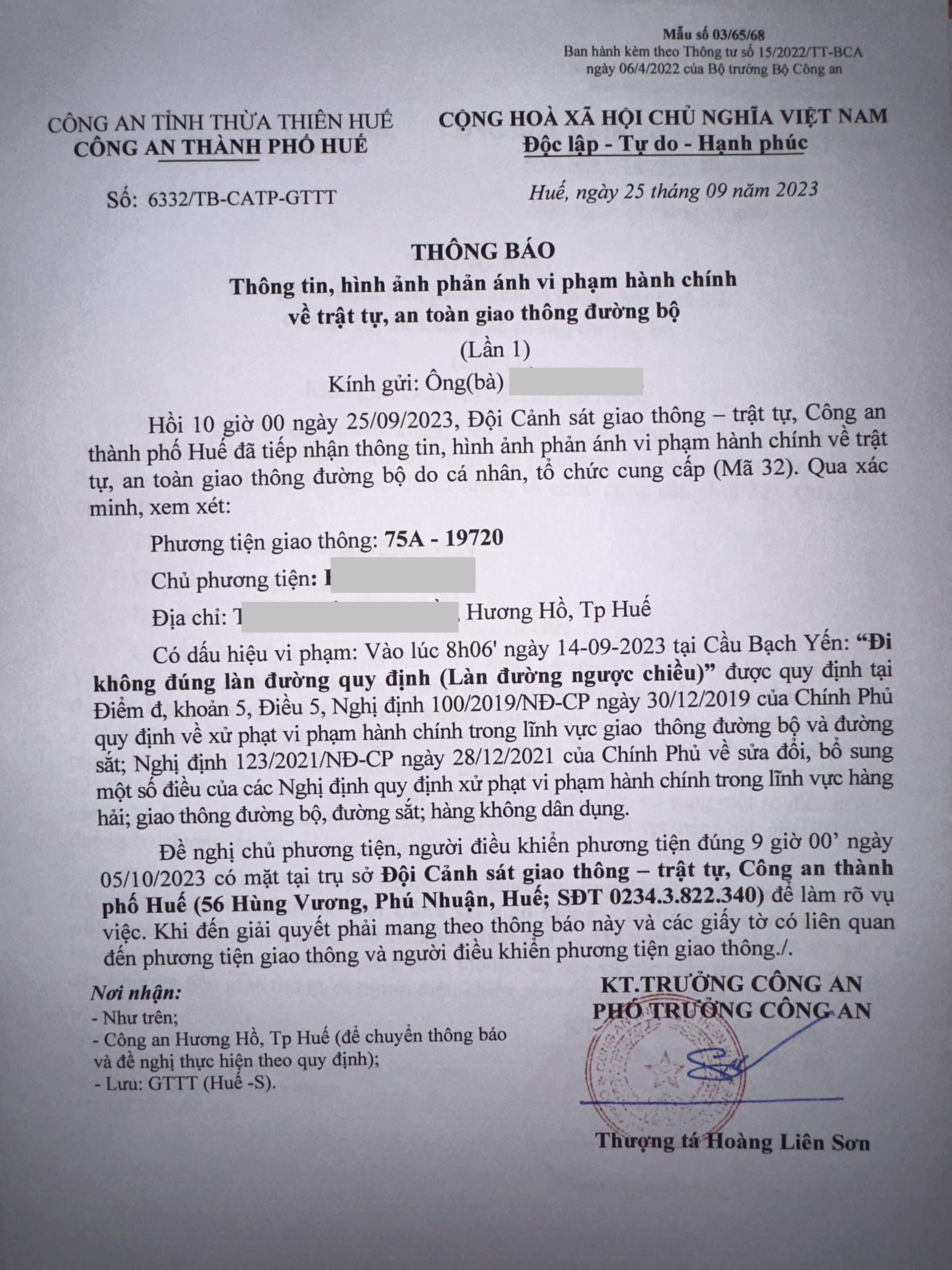 Công an thành phố cập nhật kết quả: Qua xác minh làm việc với chủ phương tiện vi phạm lỗi: Không chấp hành hiệu lệnh, chỉ dẫn của vạch kẻ đường, quy định tại điểm a, khoản 1, điều 5 Nghị định 100/2019/NĐ-CP được sửa đổi, bổ sung tại Nghị định 123/NĐ-CP ngày 28/12/2021. Ra Quyết định xử phạt 350.000đ. (Đính kèm Quyết định)