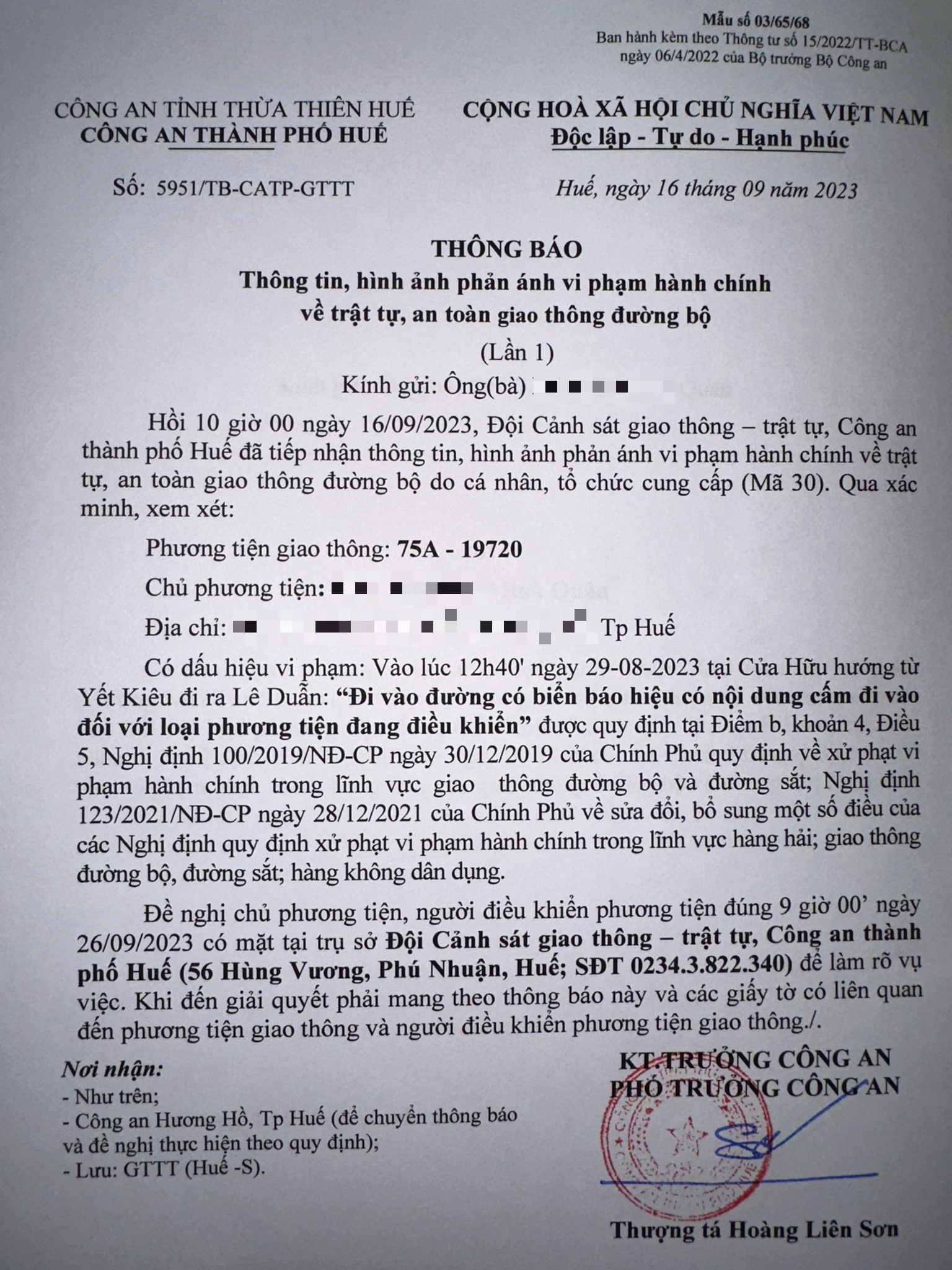 Công an thành phố cập nhật Quyết định xử phạt. (Đính kèm QĐ)