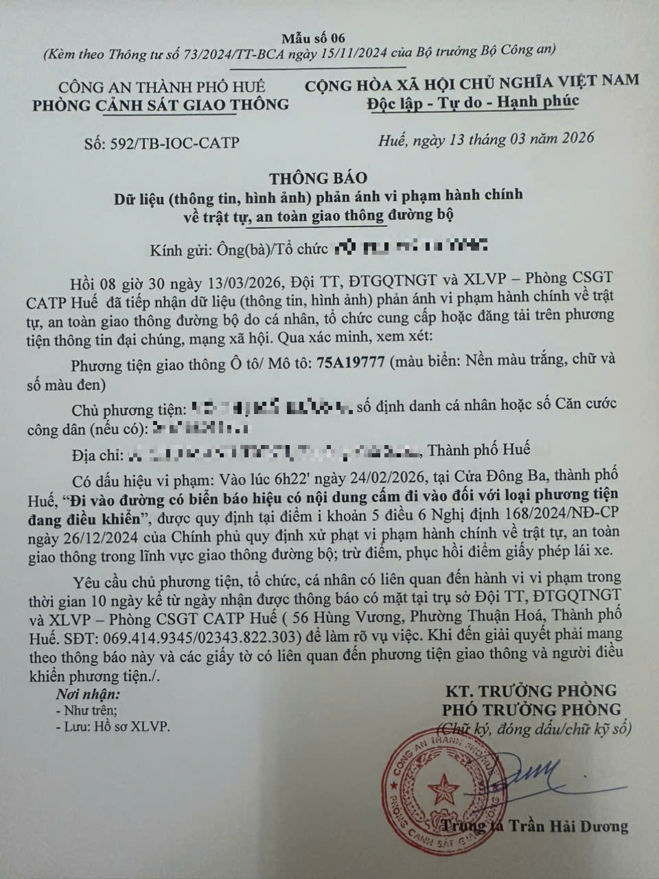 Vấn đề quý Ông/Bà phản ánh, Phòng Cảnh sát giao thông – Công an thành phố Huế đã kiểm tra và xin thông báo kết quả như sau: