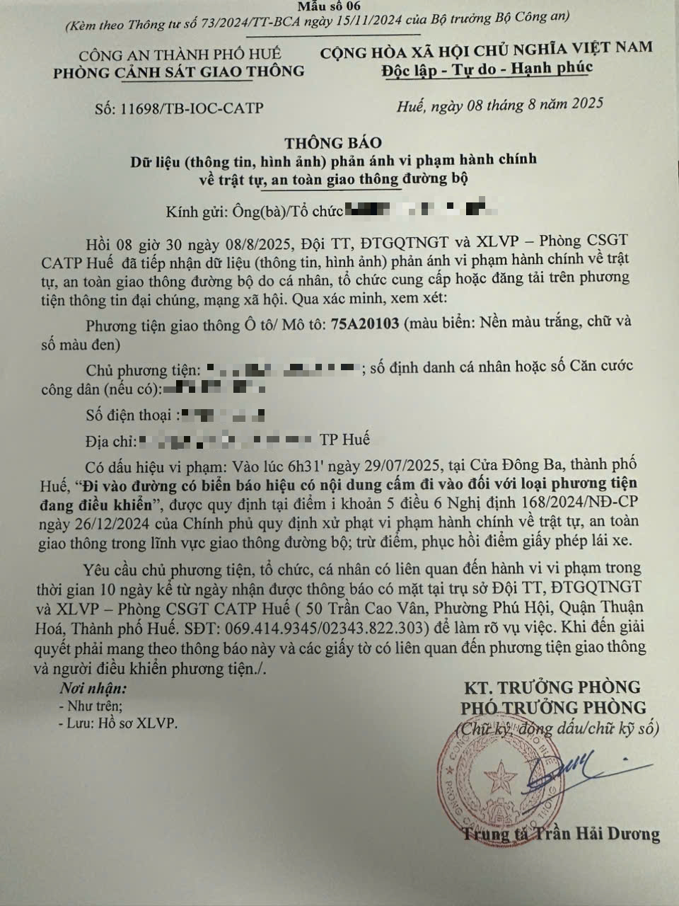 Vấn đề quý Ông/Bà phản ánh, Phòng Cảnh sát giao thông – Công an thành phố Huế đã kiểm tra và xin thông báo kết quả như sau: