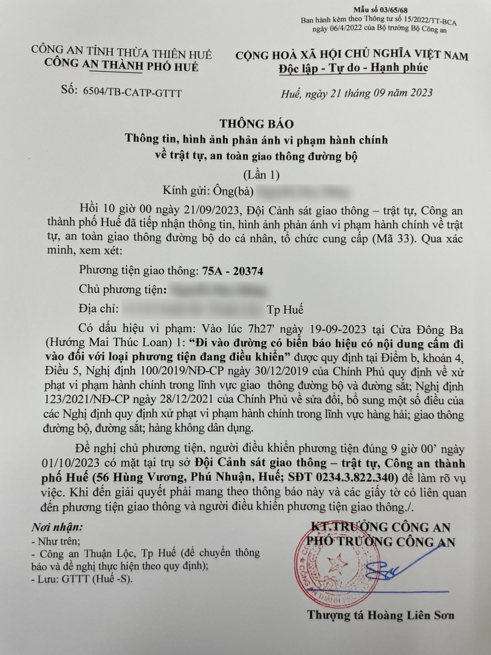 Công an thành phố Huế cập nhật Quyết định xử phạt. (Đính kèm QĐ)