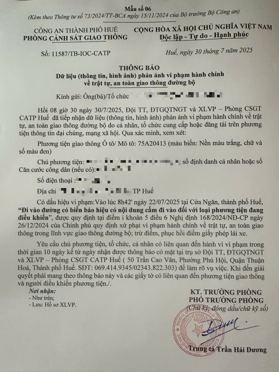 Vấn đề quý Ông/Bà phản ánh, Phòng Cảnh sát giao thông – Công an thành phố Huế đã kiểm tra và xin thông báo kết quả như sau: