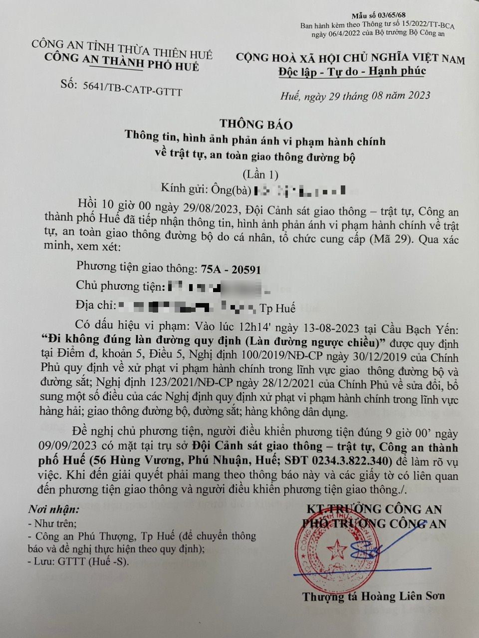 Vấn đề quý Ông/Bà phản ánh, Công an tỉnh đã chỉ đạo Công an thành phố Huế kiểm tra và xin thông báo kết quả xử lý như sau: