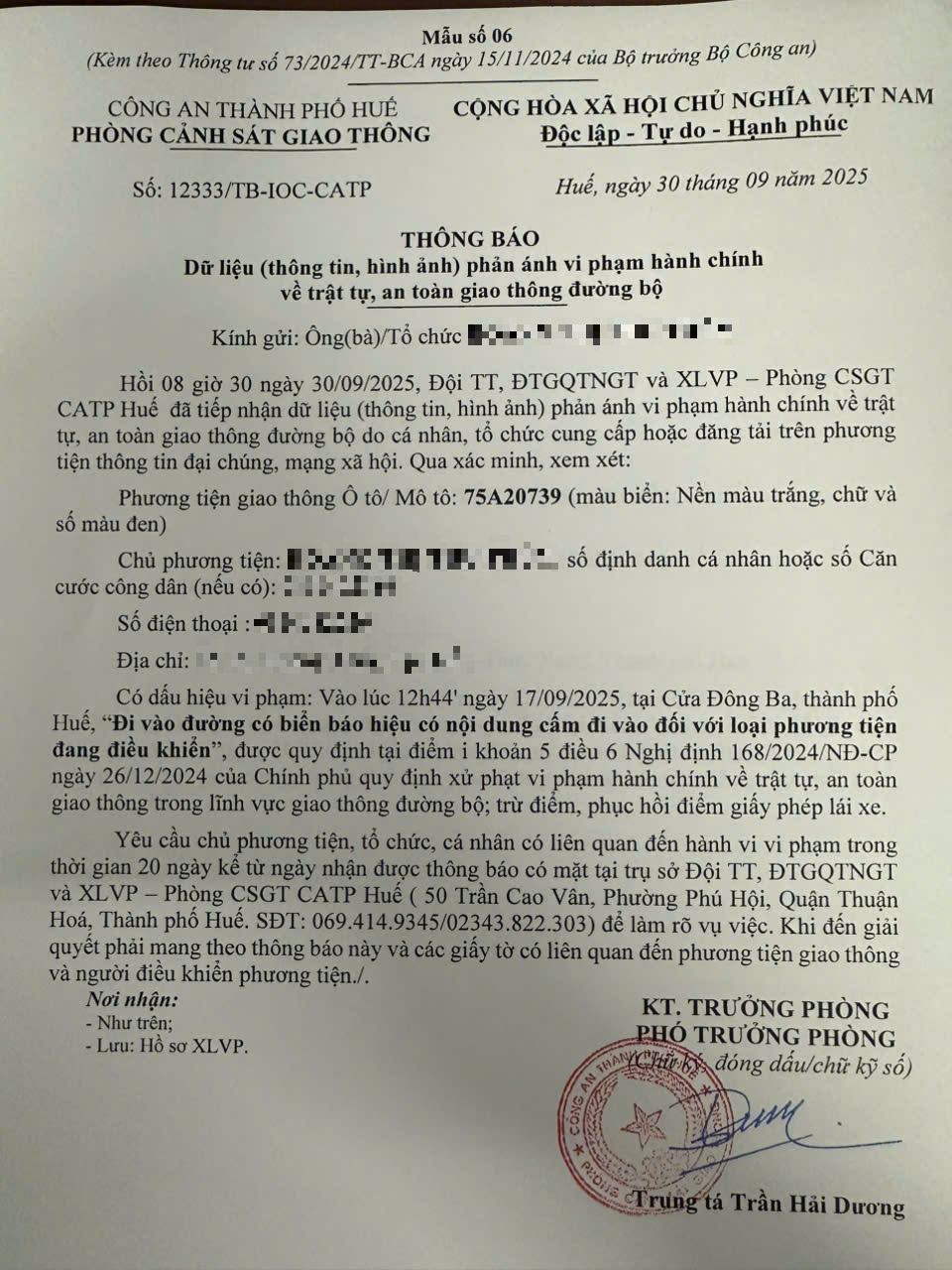 Vấn đề quý Ông/Bà phản ánh, Phòng Cảnh sát giao thông – Công an thành phố Huế đã kiểm tra và xin thông báo kết quả như sau:
