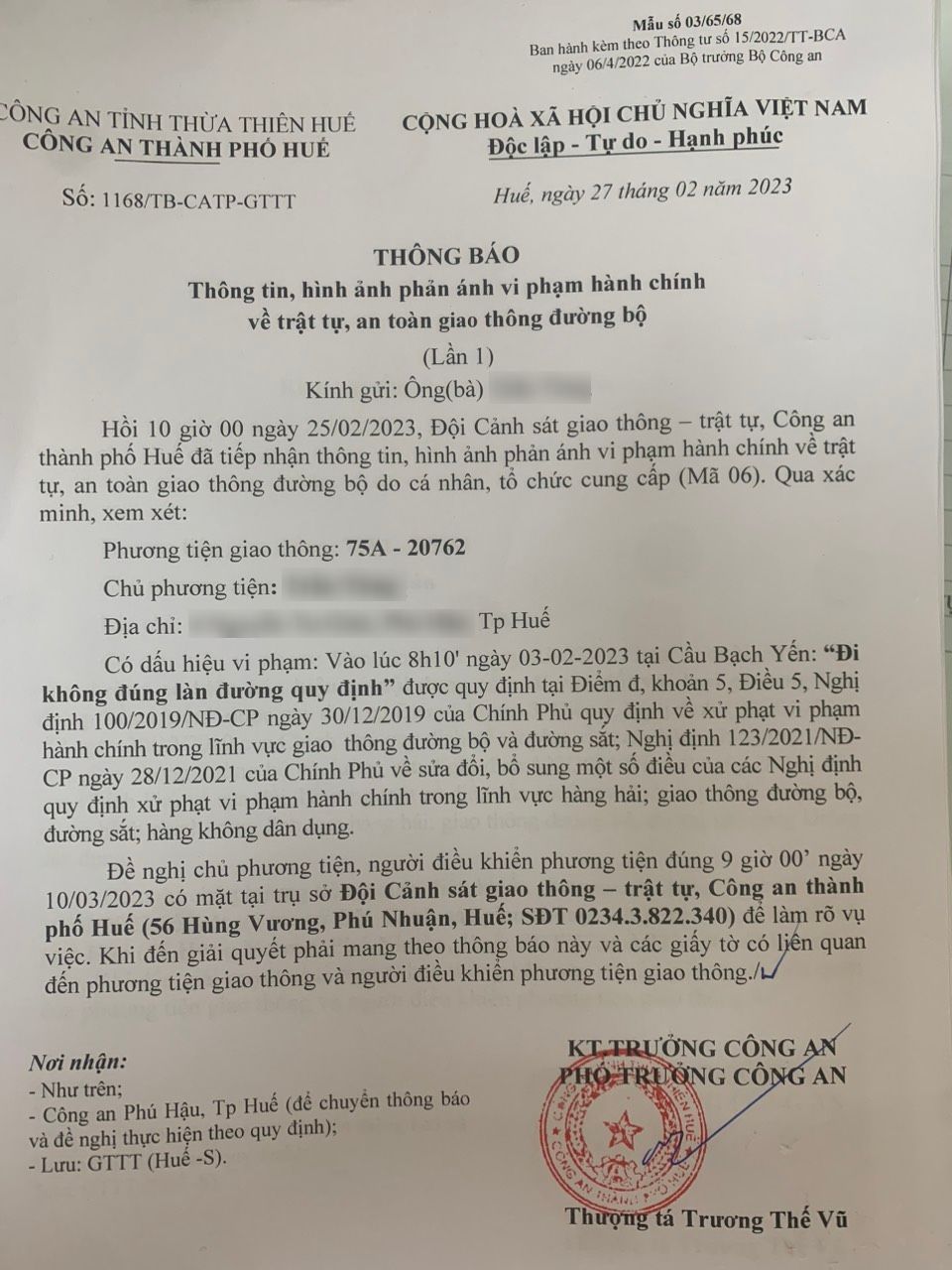 Công an thành phố đã lập hồ sơ, thông báo chủ phương tiện đến làm việc vào ngày 10/3/2023. Nếu quá thời gian thông báo mà chủ phương tiện vẫn chưa trình diện tại cơ quan, Công an thành phố sẽ gửi thông báo cho cơ quan đăng kiểm để đưa phương tiện vào cảnh báo trên Chương trình Quản lý kiểm định.