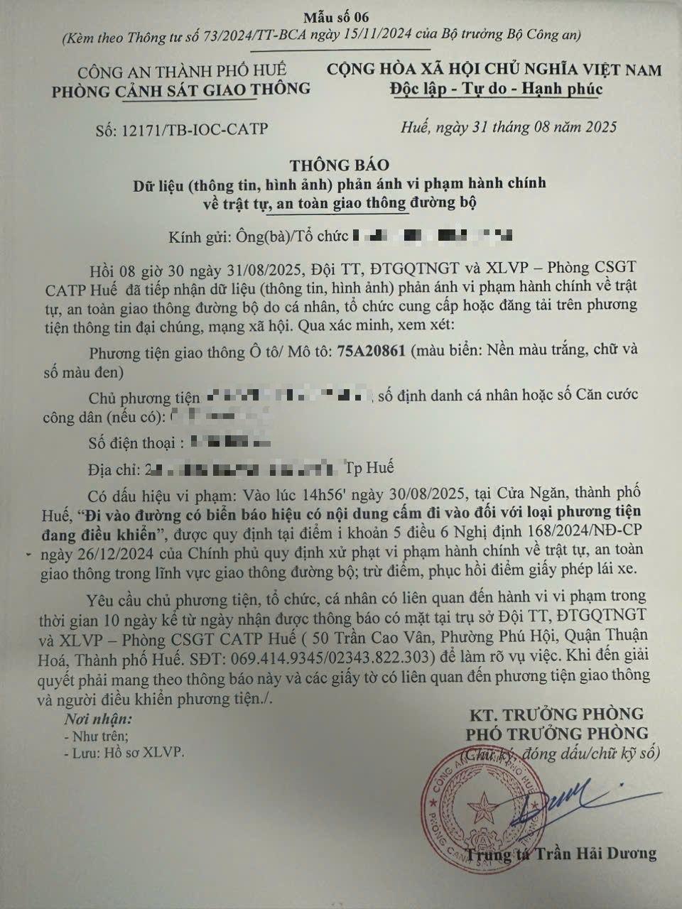 Vấn đề quý Ông/Bà phản ánh, Phòng Cảnh sát giao thông – Công an thành phố Huế đã kiểm tra và xin thông báo kết quả như sau: