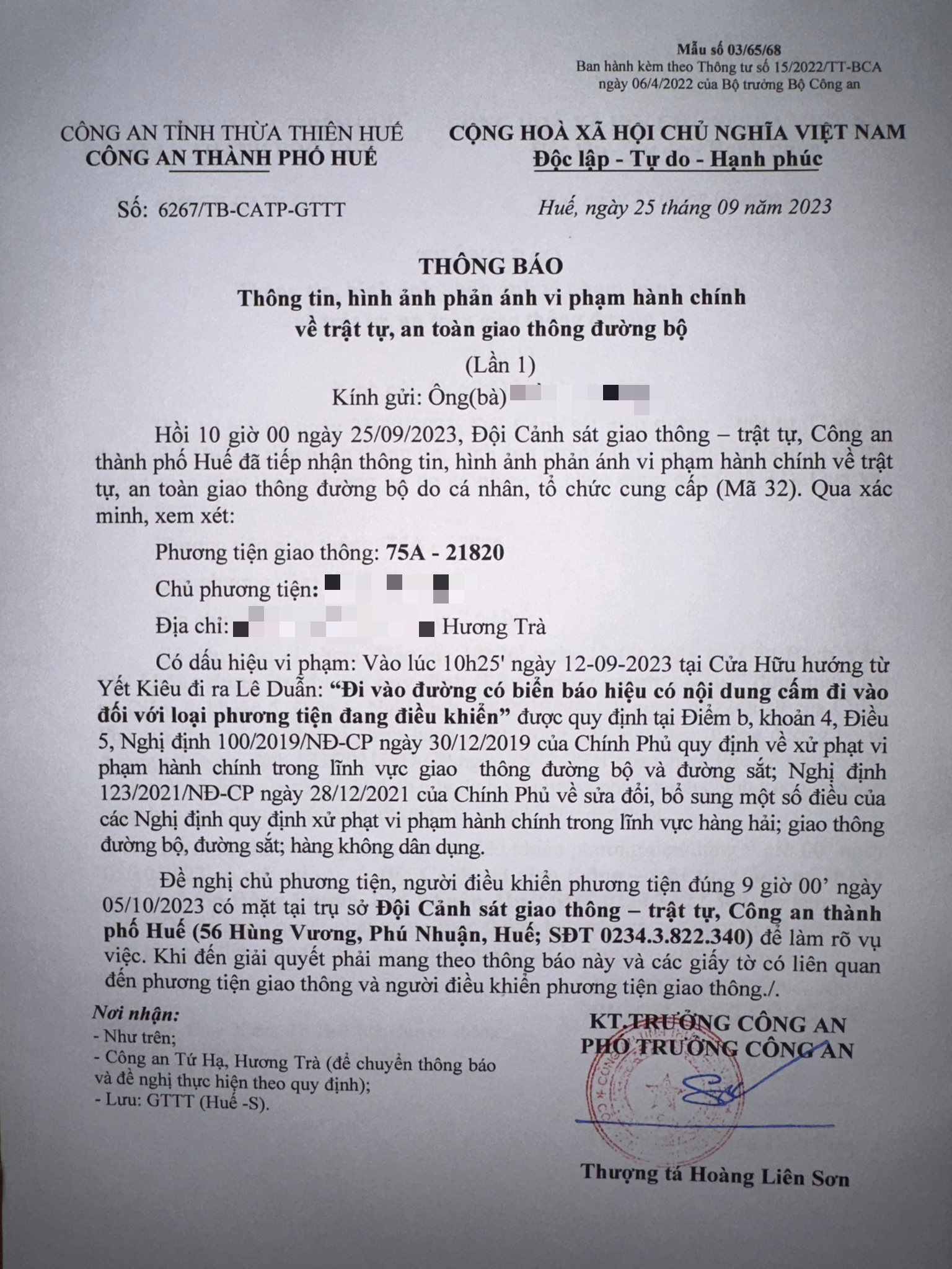 Vấn đề Ông/Bà phản ánh, Công an tỉnh đã chỉ đạo Công an thành phố Huế xác minh và xin thông báo kết quả như sau: