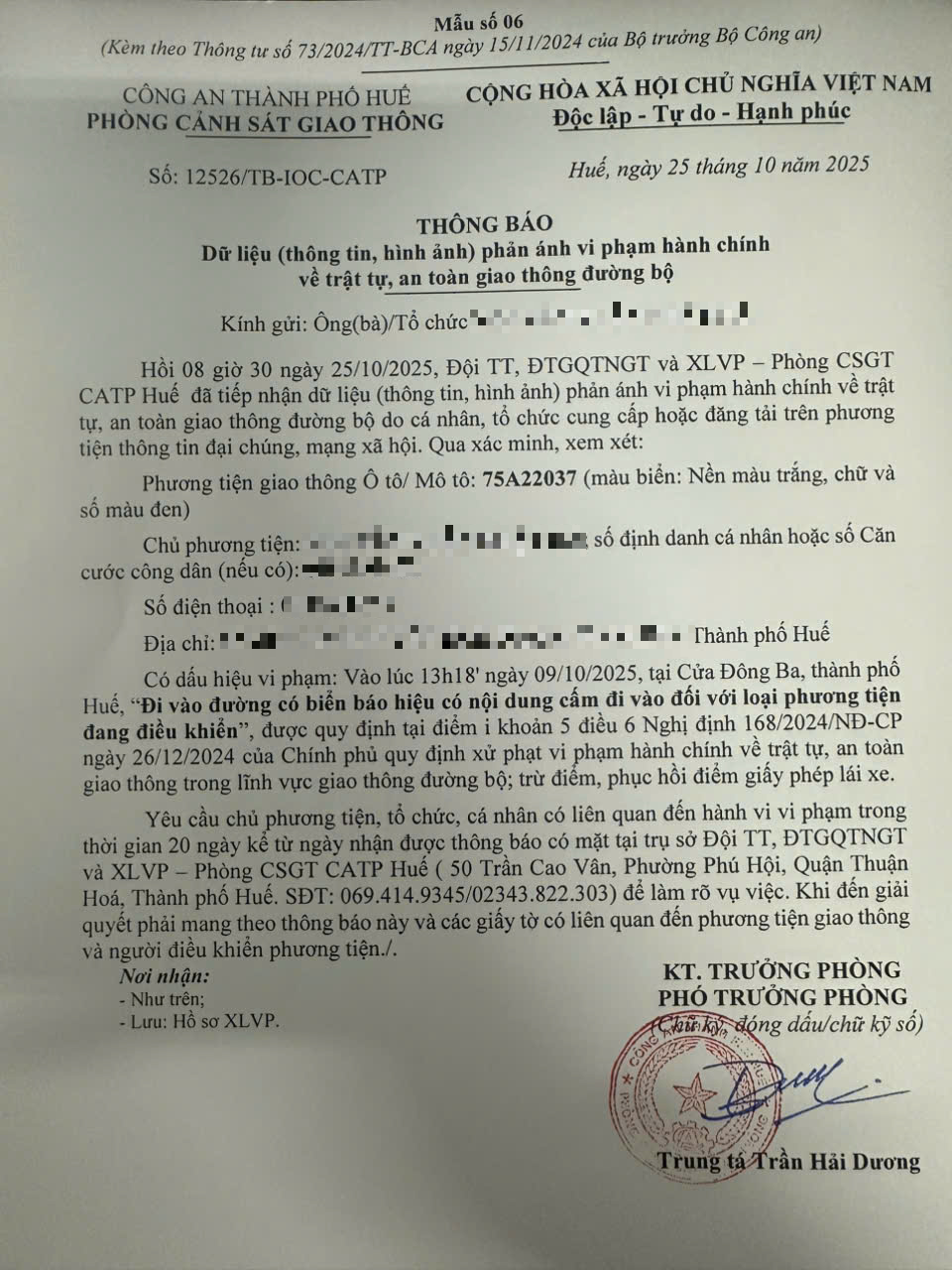 Vấn đề quý Ông/Bà phản ánh, Phòng Cảnh sát giao thông – Công an thành phố Huế đã kiểm tra và xin thông báo kết quả như sau: