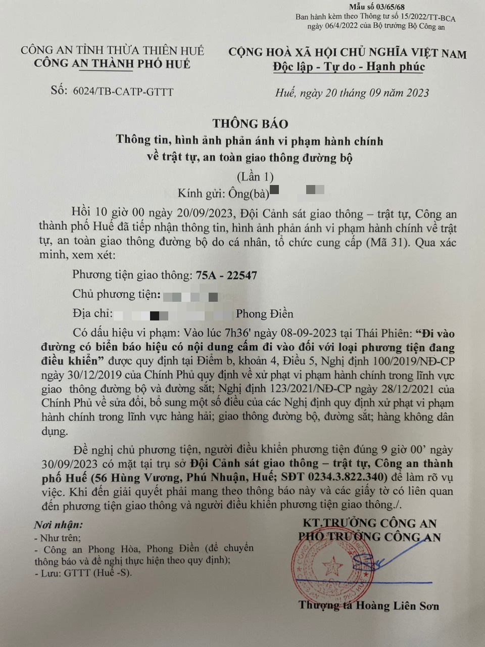 Vấn đề Ông/Bà phản ánh, Công an tỉnh đã chỉ đạo Công an thành phố Huế kiểm tra và xin thông báo kết quả như sau: