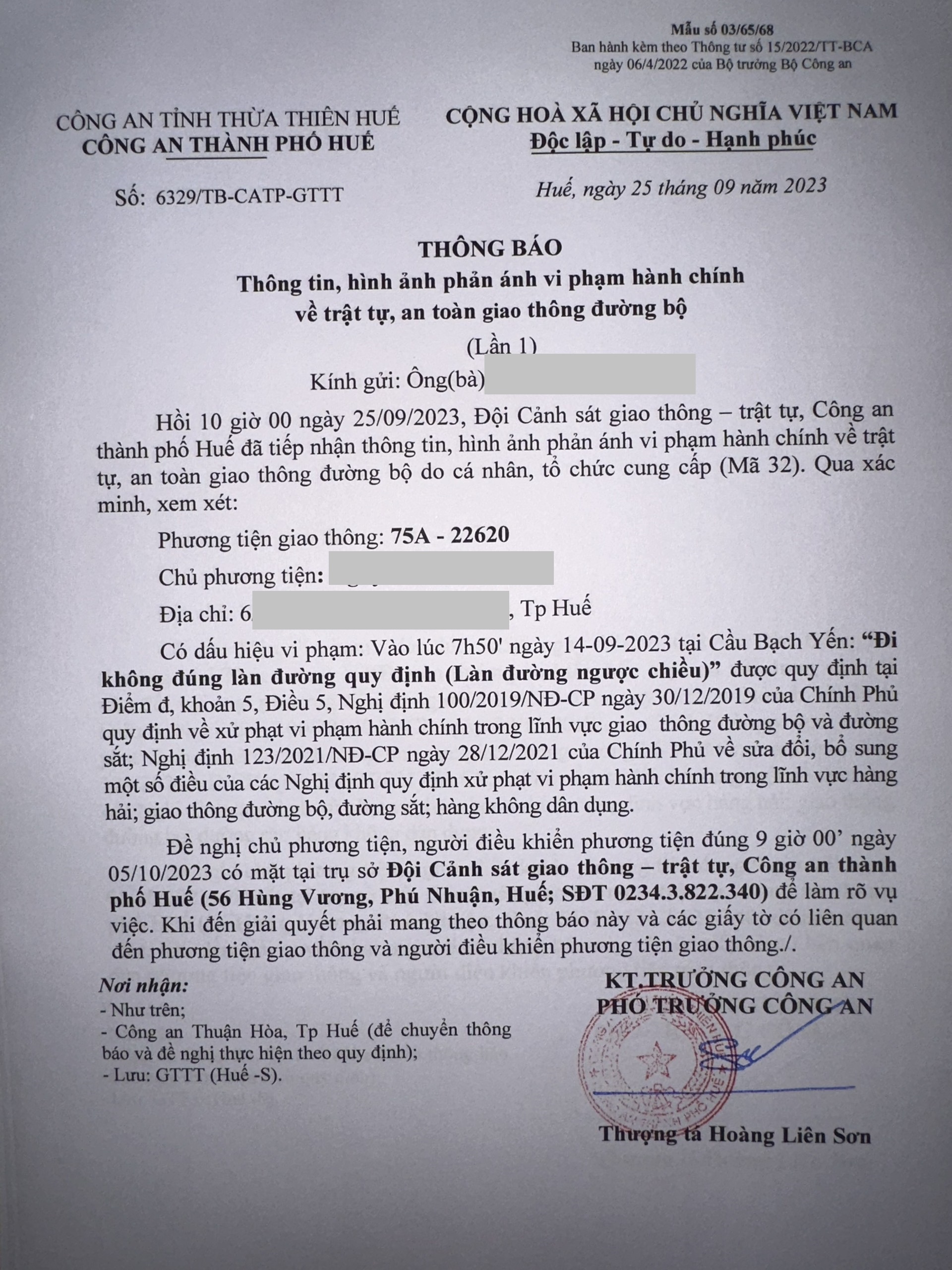 Công an thành phố cập nhật kết quả: Qua xác minh làm việc với chủ phương tiện vi phạm lỗi: Không chấp hành hiệu lệnh, chỉ dẫn của vạch kẻ đường, quy định tại điểm a, khoản 1, điều 5 Nghị định 100/2019/NĐ-CP được sửa đổi, bổ sung tại Nghị định 123/NĐ-CP ngày 28/12/2021. Ra Quyết định xử phạt 350.000đ. (Đính kèm Quyết định)