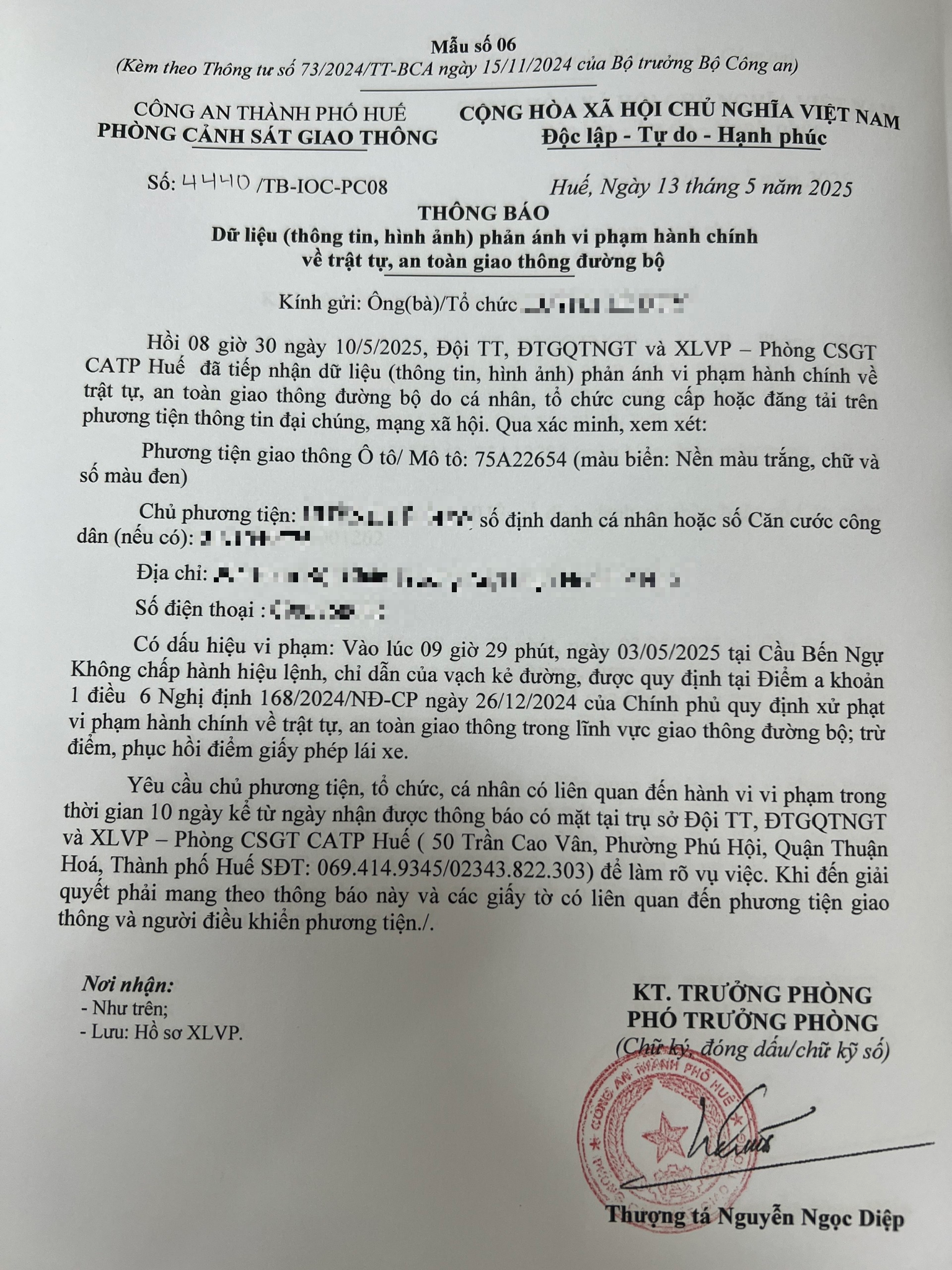 Vấn đề quý Ông/Bà phản ánh, Phòng Cảnh sát giao thông – Công an thành phố Huế đã kiểm tra và xin thông báo kết quả như sau: