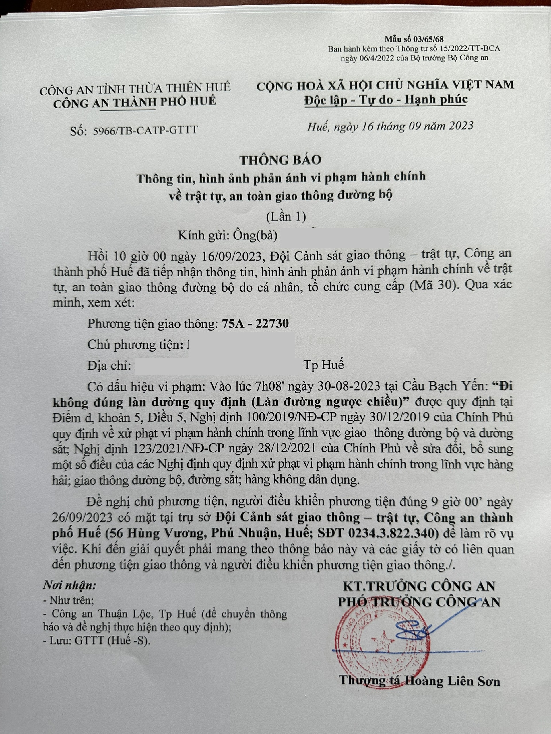 Vấn đề Ông/Bà phản ánh, Công an tỉnh đã chỉ đạo Công an thành phố Huế xin thông báo kết quả xử lý như sau: