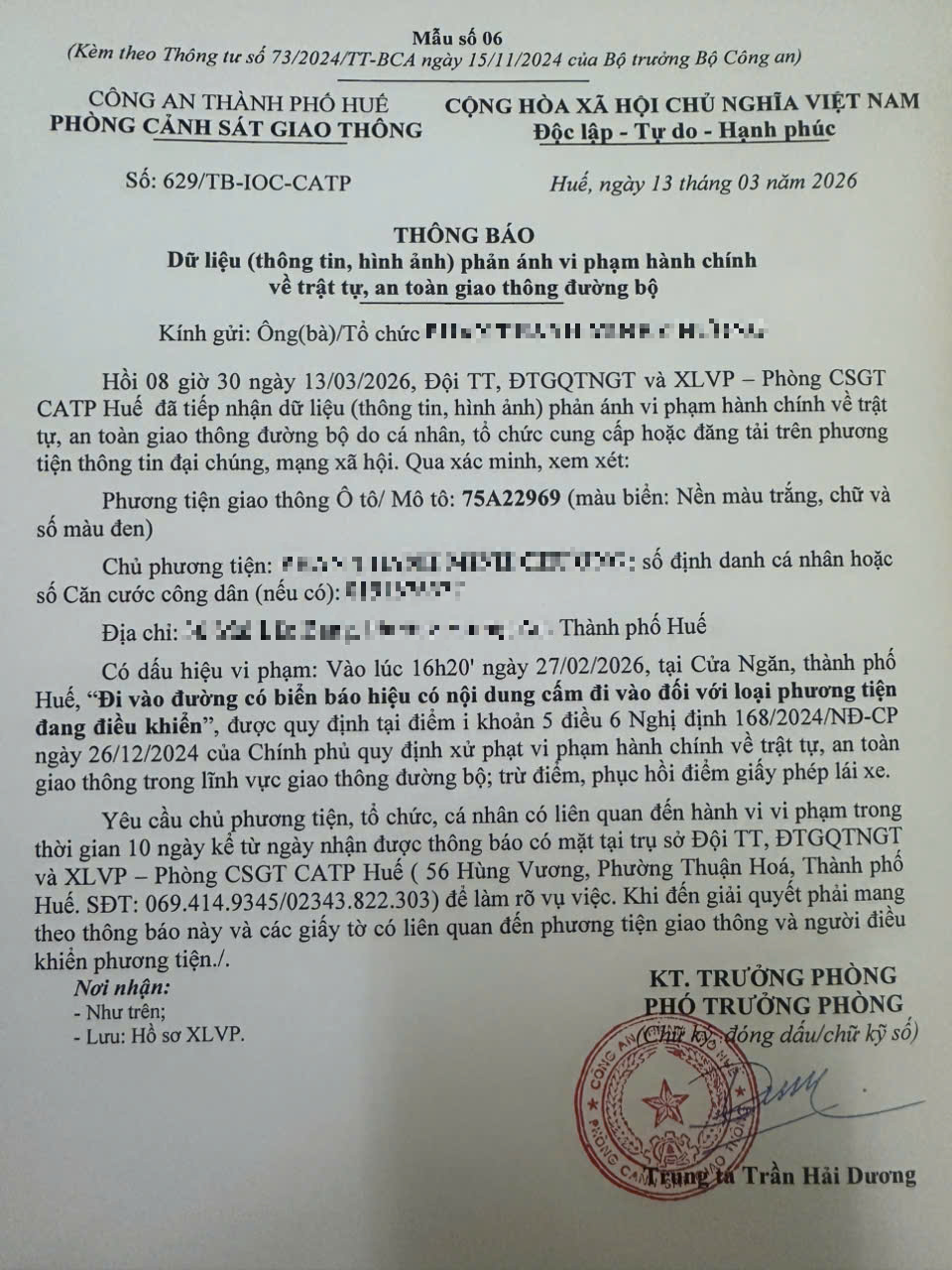 Vấn đề quý Ông/Bà phản ánh, Phòng Cảnh sát giao thông – Công an thành phố Huế đã kiểm tra và xin thông báo kết quả như sau: