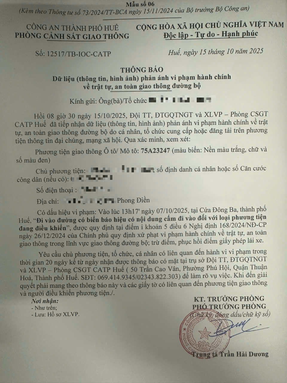 Vấn đề quý Ông/Bà phản ánh, Phòng Cảnh sát giao thông – Công an thành phố Huế đã kiểm tra và xin thông báo kết quả như sau: