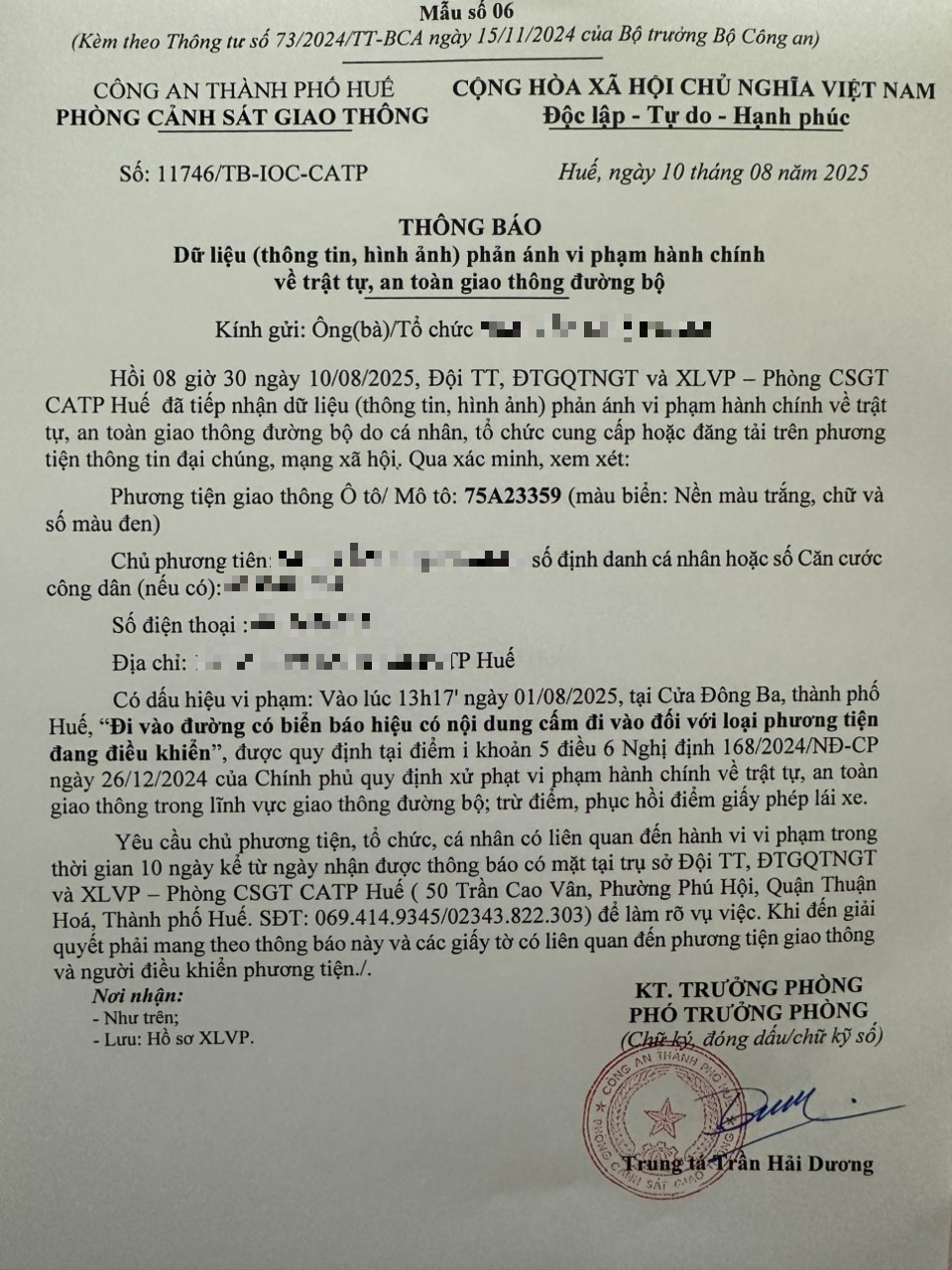 Vấn đề quý Ông/Bà phản ánh, Phòng Cảnh sát giao thông – Công an thành phố Huế đã kiểm tra và xin thông báo kết quả như sau: