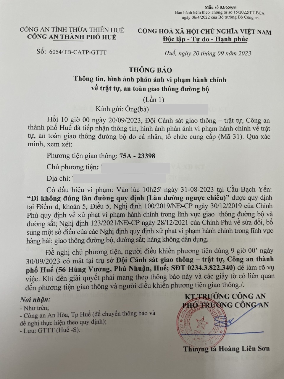 Vấn đề Ông/Bà phản ánh, Công an tỉnh đã chỉ đạo Công an thành phố Huế xin thông báo kết quả xử lý như sau: