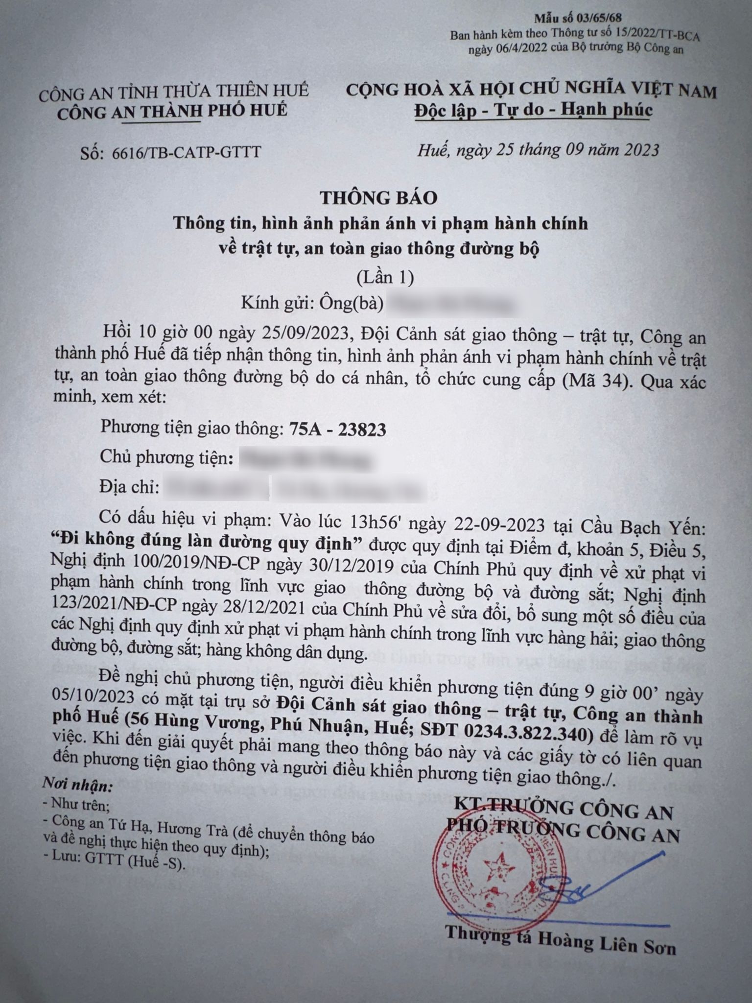 Công an thành phố cập nhật kết quả: Qua xác minh làm việc với chủ phương tiện vi phạm lỗi: Không chấp hành hiệu lệnh, chỉ dẫn của vạch kẻ đường, quy định tại điểm a, khoản 1, điều 5 Nghị định 100/2019/NĐ-CP được sửa đổi, bổ sung tại Nghị định 123/NĐ-CP ngày 28/12/2021. Ra Quyết định xử phạt 350.000đ. (Đính kèm Quyết định)