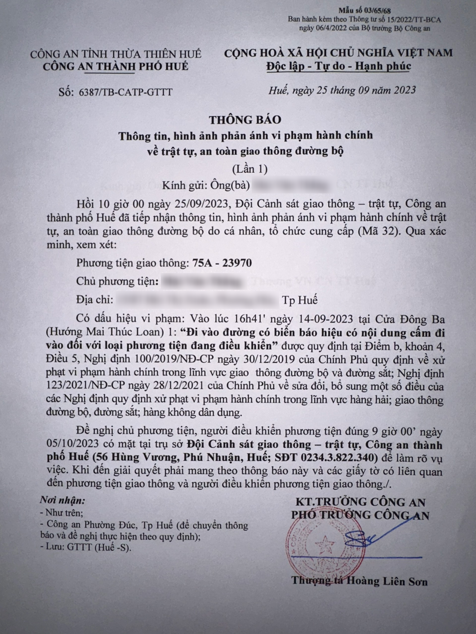 Vấn đề Ông/Bà phản ánh, Công an tỉnh đã chỉ đạo Công an thành phố Huế xác minh và xin thông báo kết quả như sau: