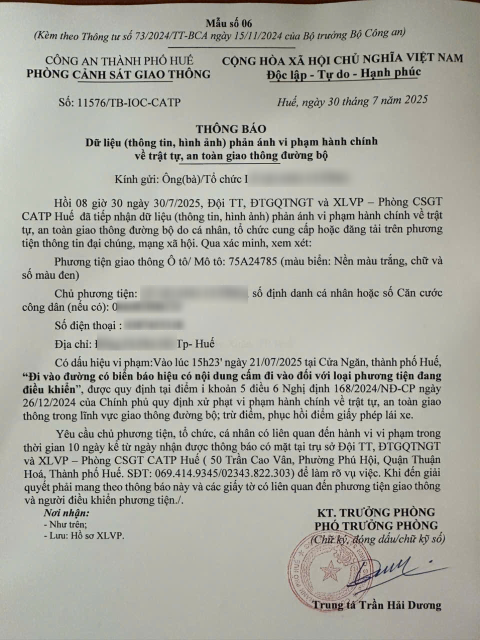 Vấn đề quý Ông/Bà phản ánh, Phòng Cảnh sát giao thông – Công an thành phố Huế đã kiểm tra và xin thông báo kết quả như sau: