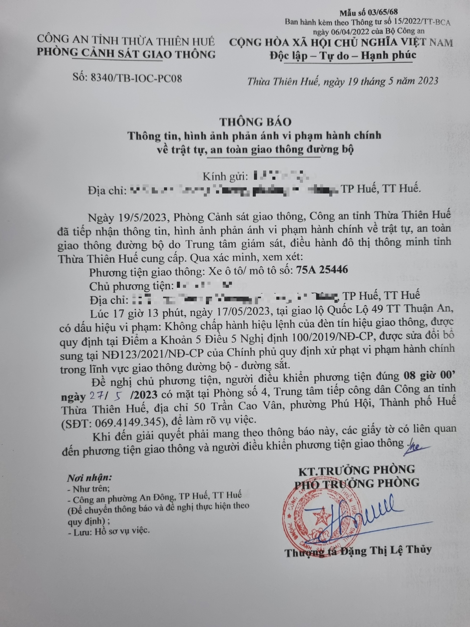 Phòng CSGT cập nhật Quyết định xử phạt. (Đính kèm QĐ)