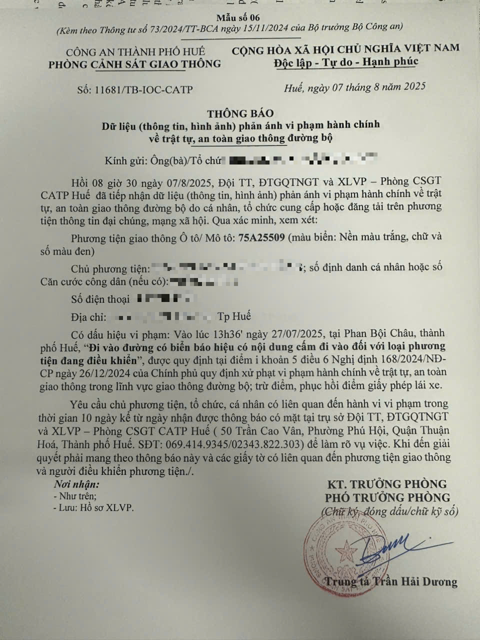 Vấn đề quý Ông/Bà phản ánh, Phòng Cảnh sát giao thông – Công an thành phố Huế đã kiểm tra và xin thông báo kết quả như sau: