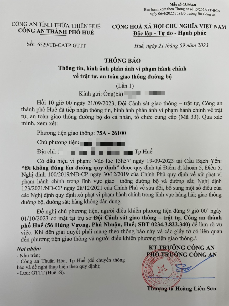 Vấn đề Ông/Bà phản ánh, Công an tỉnh đã chỉ đạo Công an thành phố Huế kiểm tra và xin thông báo kết quả như sau: