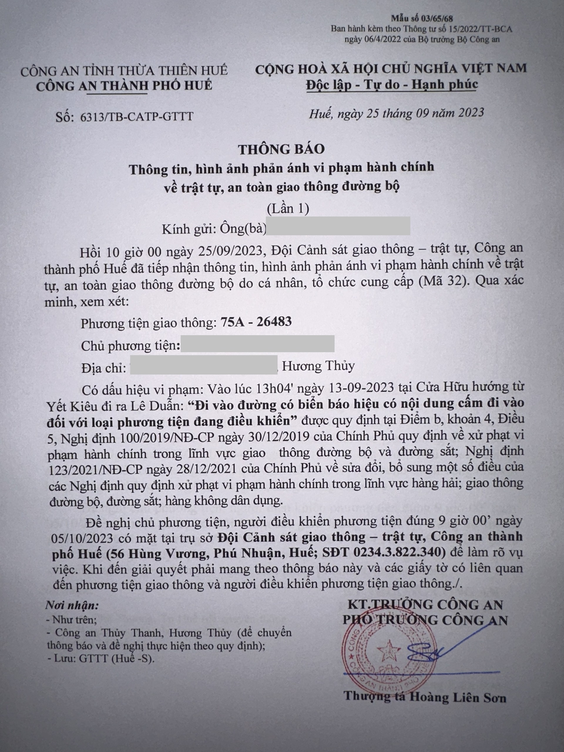 Công an thành phố cập nhật: Quyết định xử phạt vi phạm hành chính của phương tiện vi phạm (Đính kèm QĐ).